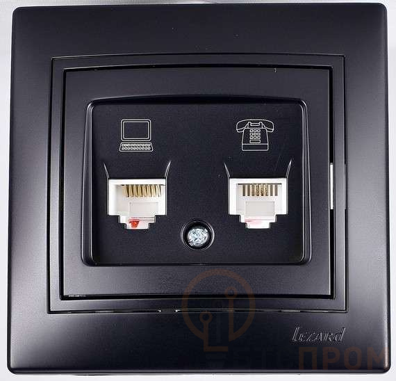 –Розетка компьютерная + телефонная 2-м Mira RJ45 + RJ11 со вставкой черн. бархат LEZARD 701-4242-143