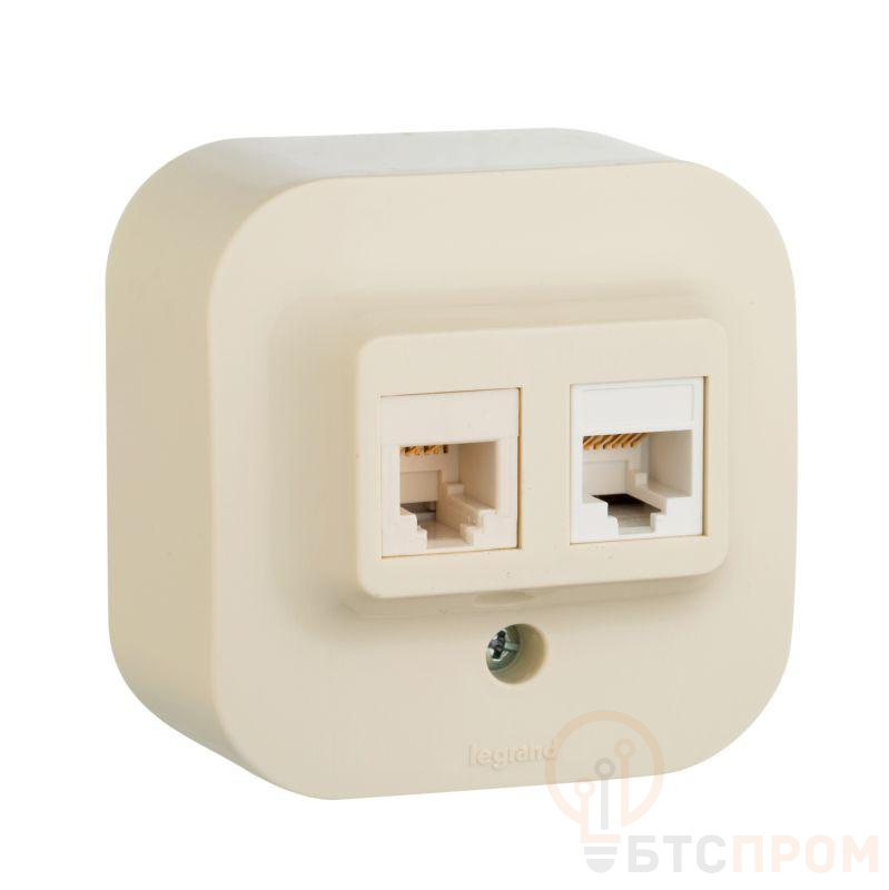 Розетка компьютерная + телефонная 2-м ОП 2мод. Quteo RJ45 + RJ11 кат.5E UTP IP20 сл. кость Leg 782251