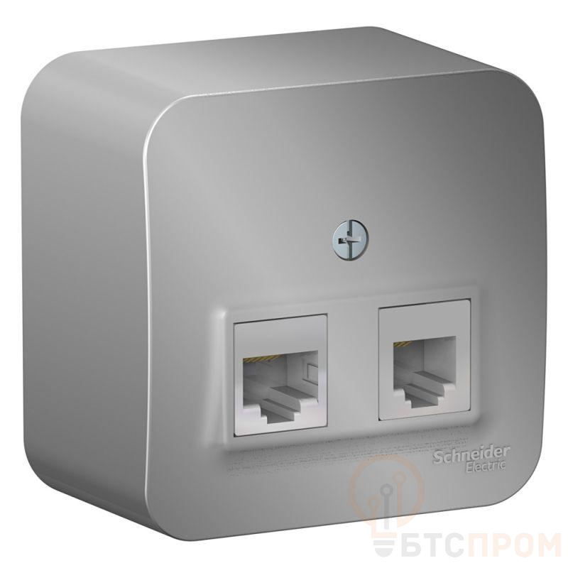 Розетка компьютерная + телефонная 2-м ОП Blanca RJ45 кат.5E + RJ11 с изолир. пластиной алюм. SE BLNIA045113