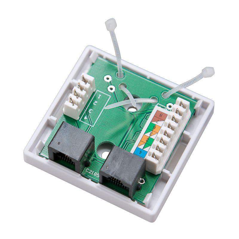Розетка компьютерная накладная RJ-45+ RJ-11 (2 порта) применяется для подключения компьютеров и телефонов к информационным сетям внутри помещений. Устройство оснащено портом RJ-45 категории 5е и портом RJ-11 под разъем 6Р-4С. Кабель фиксируется с помощью IDC разъемов (самозажимной контакт с прорезанием изоляции). Розетка устанавливается на стену накладным способом. Порты расположены с торца. Благодаря высокому качеству и низкой цене розетка станет незаменимым устройством в любом офисе или предприятии.