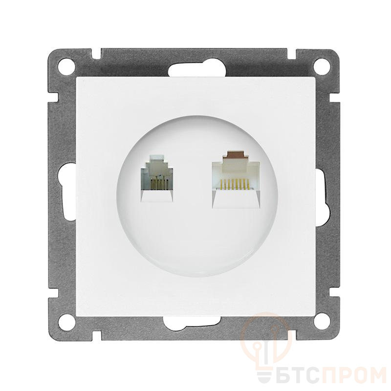 Розетка компьютерная + телефонная 2-м СП Афина механизм бел. Universal A0052 фото в каталоге от BTSprom.by