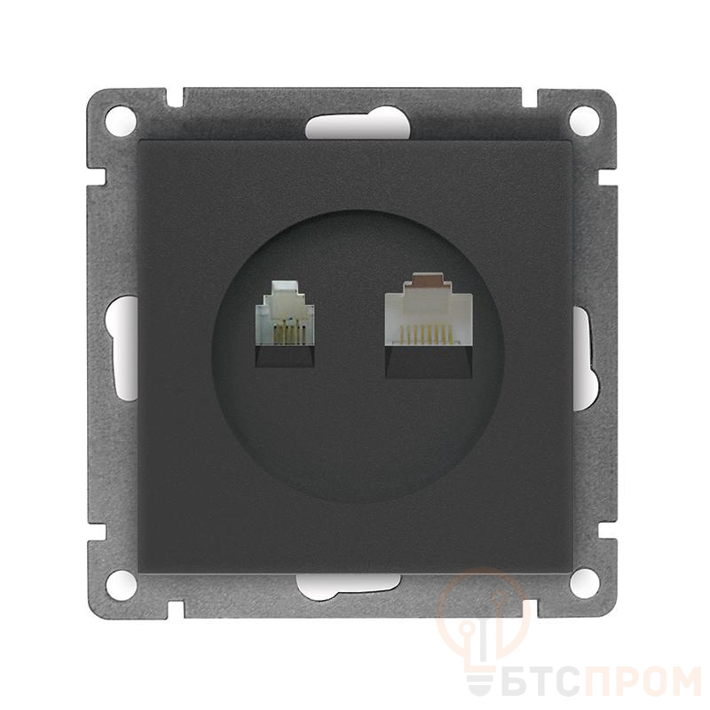 Розетка компьютерная + телефонная 2-м СП Афина механизм графит Universal A0052-Gr фото в каталоге от BTSprom.by