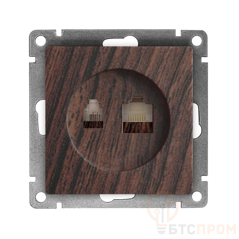 Розетка компьютерная + телефонная 2-м СП Афина механизм венге Universal A0052-V фото в каталоге от BTSprom.by