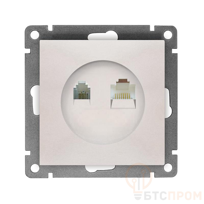 Розетка компьютерная + телефонная 2-м СП Афина механизм жемчуж. Universal A0052-OBr фото в каталоге от BTSprom.by