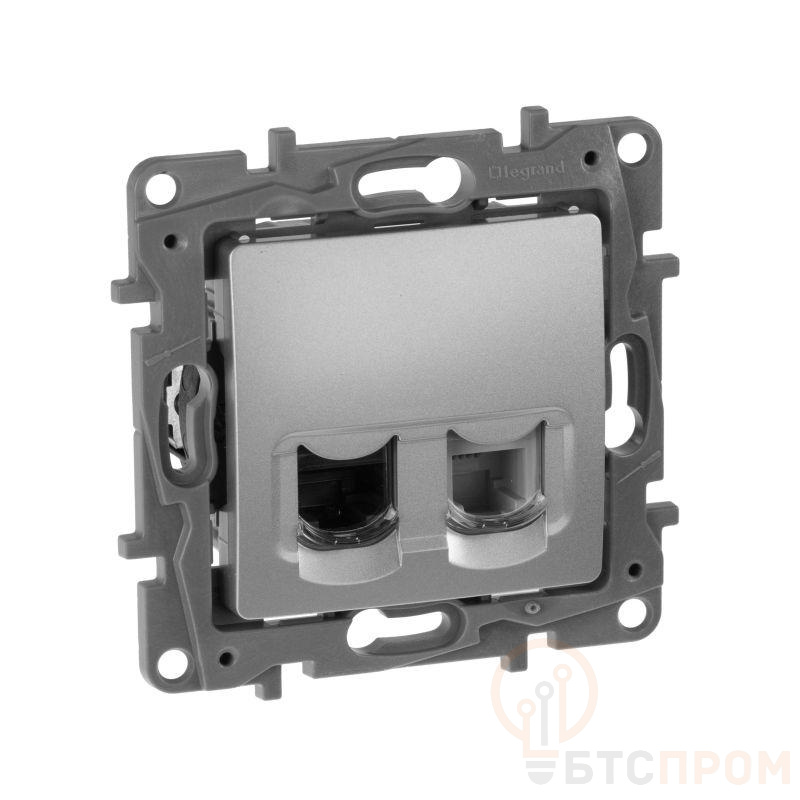 Розетка компьютерная + телефонная 2-м СП Etika RJ45 + RJ11 кат.5E UTP механизм алюм. IEK 672452 фото в каталоге от BTSprom.by