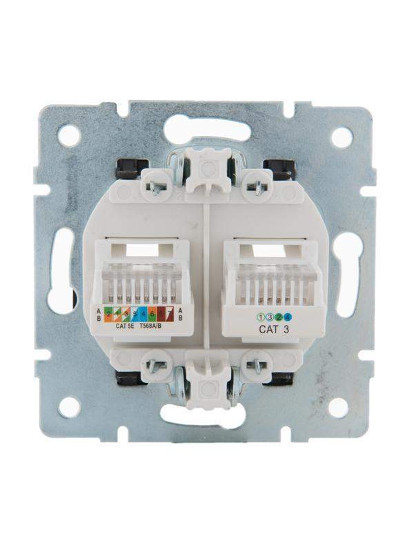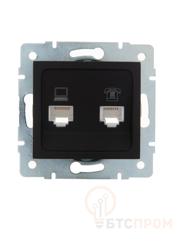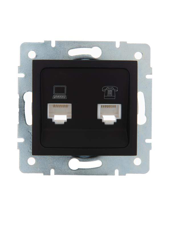 Розетка компьютерная + телефонная 2-м СП Karina RJ45 + RJ11 механизм черн. бархат LEZARD 707-4288-143