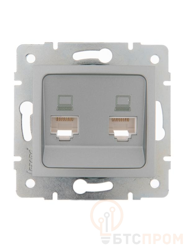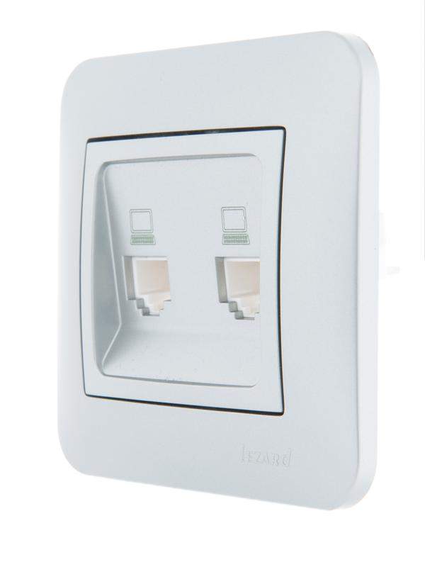 Розетка компьютерная + телефонная 2-м СП Karina RJ45 + RJ11 механизм матов. серебр. LEZARD 707-4388-143