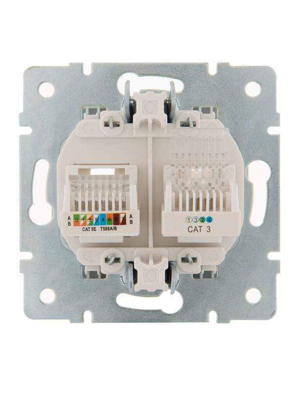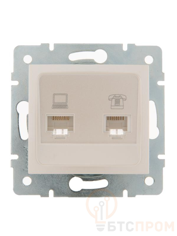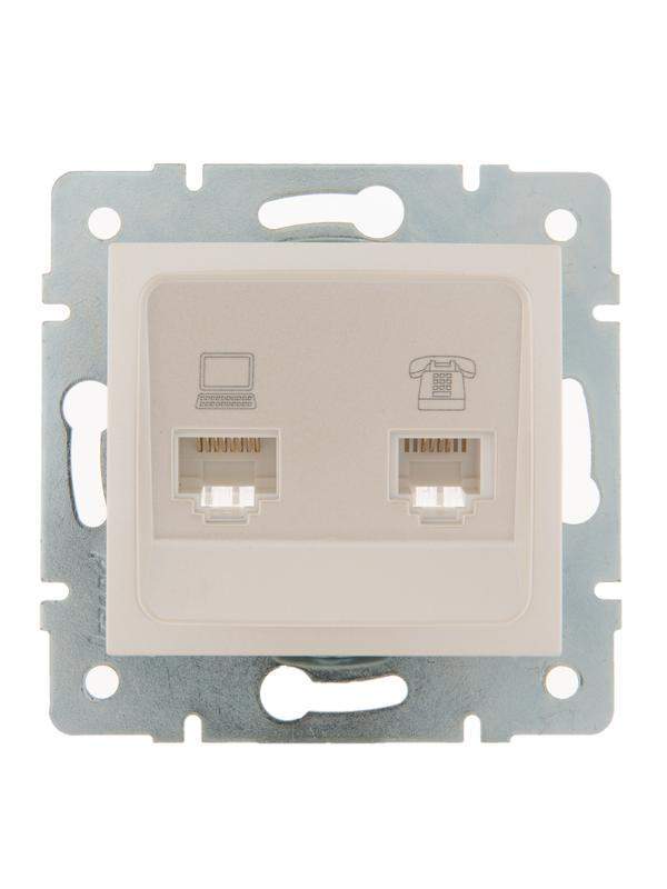 Розетка компьютерная + телефонная 2-м СП Karina RJ45 + RJ11 механизм жемчуж./бел. перламутр. LEZARD 707-3088-143
