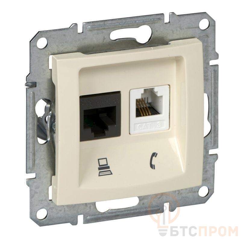 Розетка компьютерная + телефонная 2-м СП Sedna RJ45 + RJ11 кат.5E UTP неэкранир. механизм беж. SchE SDN5100147