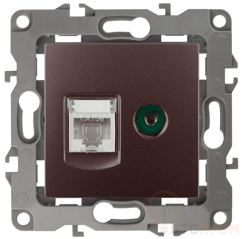 Розетка телевизионная + интернет серии Эра 12 скрытой установки механизм цвет бронза 12-3110-13. Сделана из поликарбоната. Монтаж в подрозетник производится и на лапки, и на винты. Рамки приобретаются отдельно.
