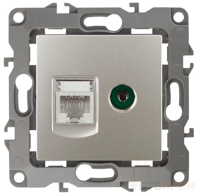 Розетка телевизионная + интернет серии Эра 12 скрытой установки механизм цвет перламутр 12-3110-15. Сделана из поликарбоната. Монтаж в подрозетник производится и на лапки, и на винты. Рамки приобретаются отдельно. Рамки Эра 12: 1 пост 12-5001-хх, 2 поста 12-5002-хх, 3 поста 12-5003-хх, 4 поста 12-5004-хх, 5 постов 12-5005-хх. Рамки Эра 12 Сатин: 1 пост 12-5101-хх, 2 поста 12-5102-хх, 3 поста 12-5103-хх, 4 поста 12-5104-хх, 5 постов - 12-5105-хх