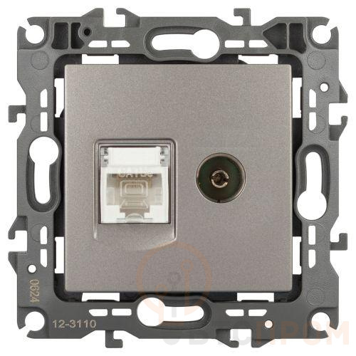 <p>Розетка компьютерная + телевизионная Эра 12-3110-16 — это двойная комбинированная розетка для организации стационарных точек подключения к локальной сети и телевизионной антенне. Модель выполнена в классическом дизайне цвета титан и предназначена для скрытой установки в стандартный подрозетник.</p>