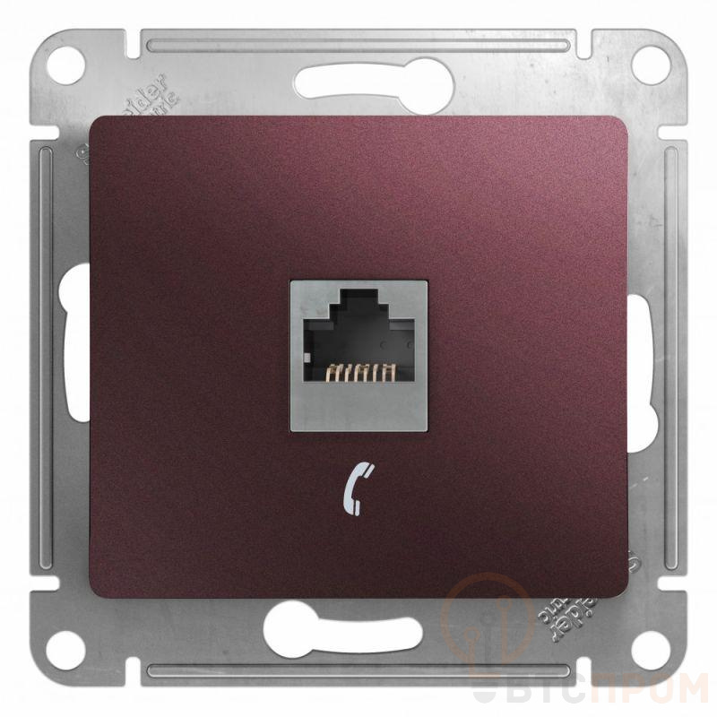 Механизм Systeme Electric (ранее Schneider Electric) серии Glossa (цвет баклажановый) розетки телефонной с разъёмом RJ11 предназначен для удобного и быстрого подключения вашего телефона, модема или факса к телефонной сети. - Выполнен из материала PС+ASA, стойкого к УФ-излучению и появлению царапин.