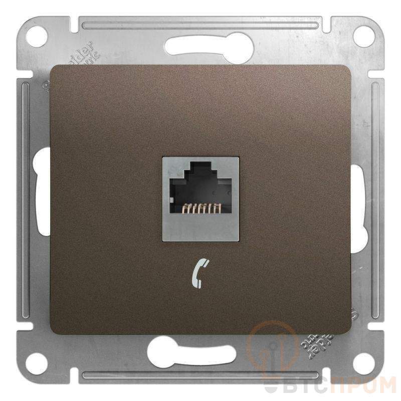 Механизм Glossa (цвет шоколад) розетки телефонной с разъёмом RJ11 предназначен для удобного и быстрого подключения вашего телефона, модема или факса к телефонной сети. - Выполнен из материала PС+ASA, стойкого к УФ-излучению и появлению царапин.