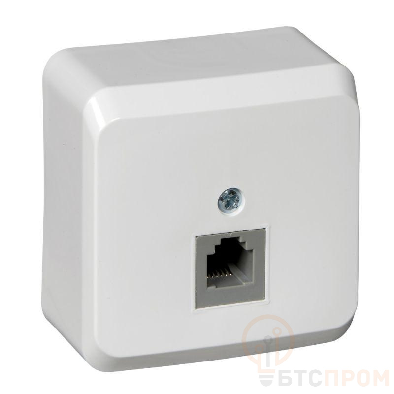 Розетка телефонная RJ 11, белая, наружная установка. серия продукта: Этюд - тип устройства или его аксессуаров: телефонная розетка - комплектация изделия: механизм в сборе - тип покрытия: глянцевая - монтаж: винтами, лапками - тип разъема: RJ11. Преимущества: Удачное решение для города и дачи, Доступная цена, Современный дизайн, Высокая степень надежности, Большой выбор функциональных возможностей и цветовых сочетаний, Простота и удобство монтажа, Соответствие ГОСТ Р и МЭК, Удобная упаковка.. применения: - Для загородного жилья, Для торговых центров, павильонов, зданий из сэндвич-панелей, где невозможно штробление стен, Прекрасная замена вышедших из строя электроустановочных изделий в многоквартирных домах, Для влажных помещений (IP44)..