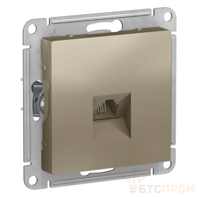 Механизм Systeme Electric (ранее Schneider Electric) серии AtlasDesign в цвете шампань розетки телефонной с разъёмом RJ11 предназначен для удобного и быстрого подключения вашего телефона, модема или факса к телефонной сети. - Лицевые детали из качественного ABS-пластика, устойчивого к царапинам и УФ-излучению. - Усиленные прямые монтажные лапки для лучшей фиксации механизма в монтажной коробке.