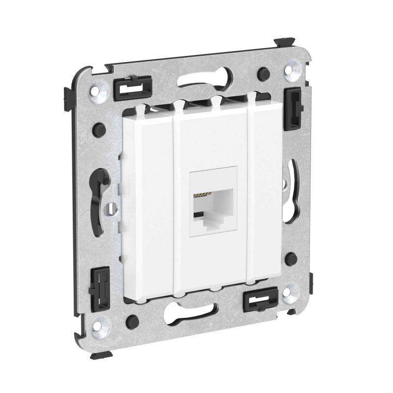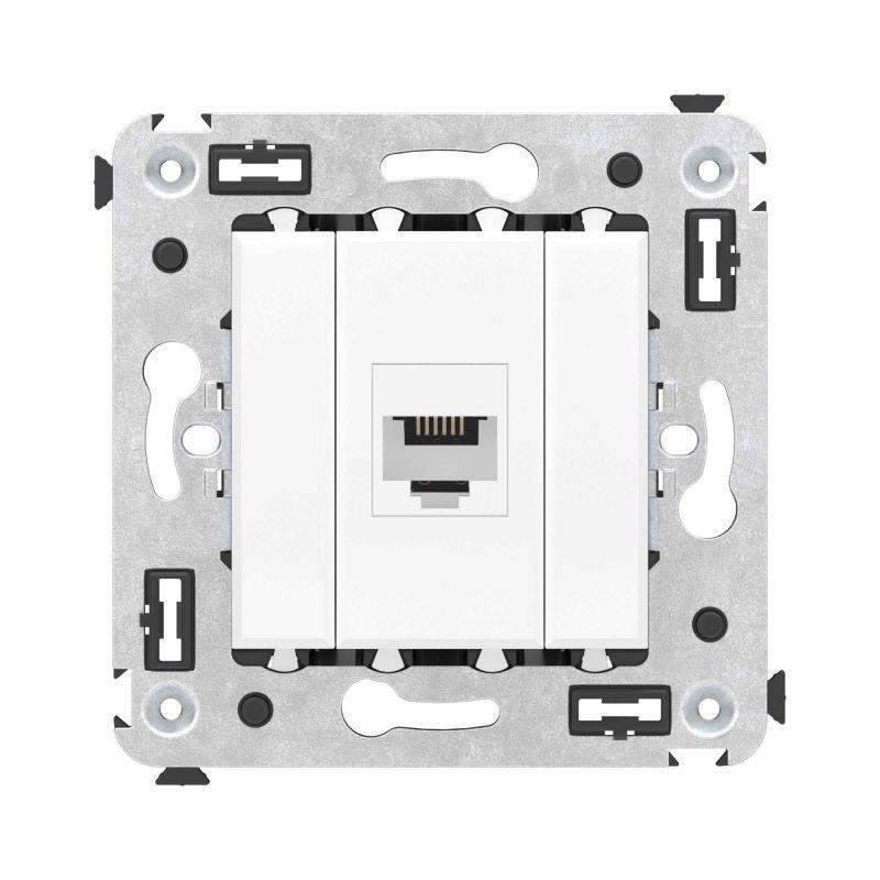Телефонная розетка RJ-12 без шторки используется для коммутации линий телефонной связи в патч-панелях или для связи телефонных аппаратов с розеткой. Предназначена для скрытого монтажа в стену, поставляется в комплекте с суппортом. Материал – металл, термопласт. Пластиковые детали электроустановочного изделия имеют цвет "Белое облако".