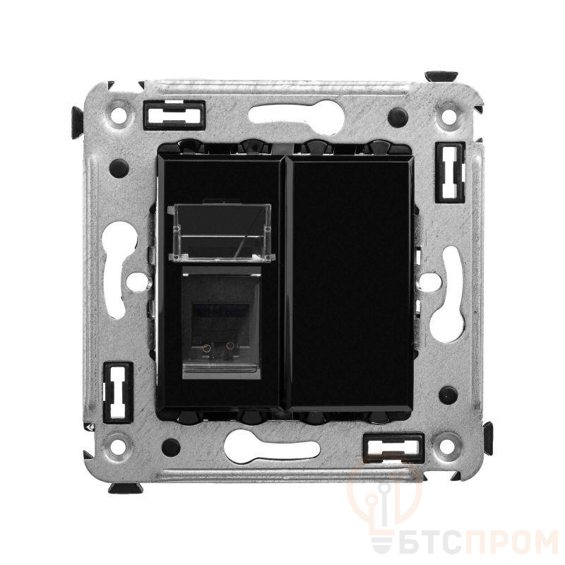 Телефонная розетка RJ-12 от ДКС устанавливается в стену (скрыто) и применяется для связи телефонных линий или же коммутации телефонных аппаратов с розеткой. Материал – металл, термопласт. Пластиковые части имеют нежный оттенок "Черный квадрат" – изысканный, таинственный, мистический черный, придающий особый шарм лаконичным формам рамок для ЭУИ "Avanti".