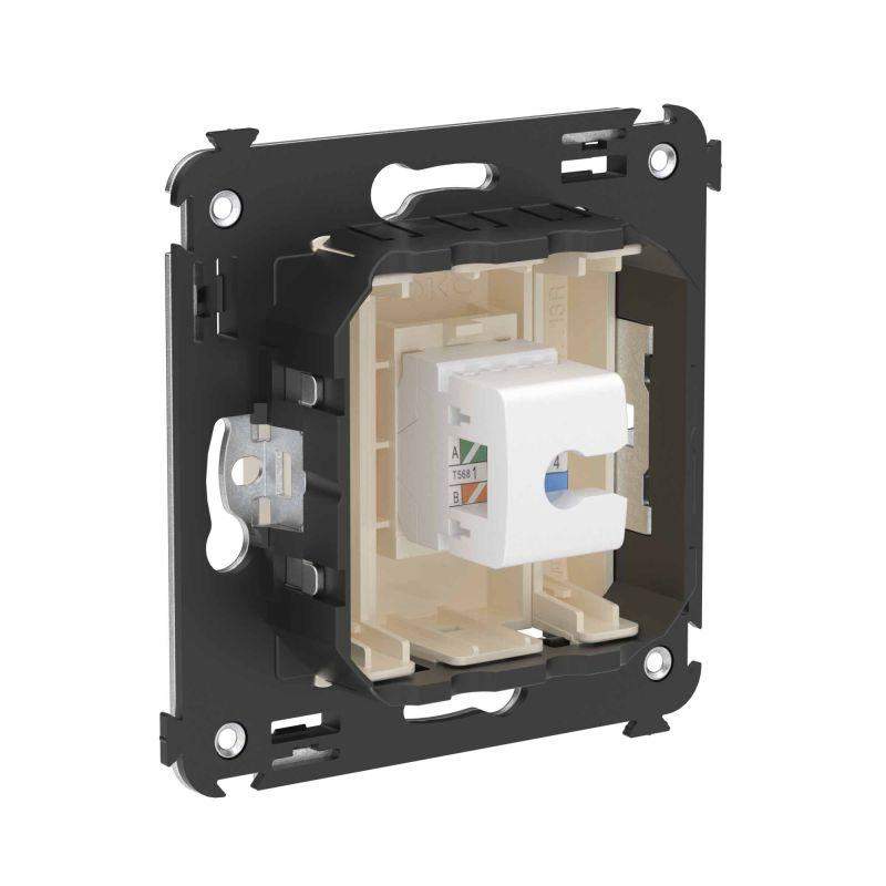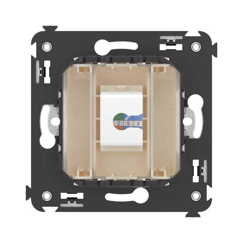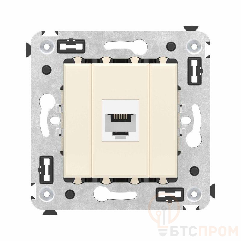 Телефонная розетка RJ-12 без шторки используется для коммутации линий телефонной связи в патч-панелях или для связи телефонных аппаратов с розеткой. Предназначена для скрытого монтажа в стену, поставляется в комплекте с суппортом. Материал – металл, термопласт. Пластиковые детали электроустановочного изделия имеют цвет "Ванильная дымка".