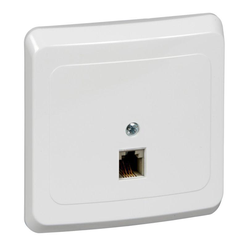 Телефонная розетка RJ-11. серия продукта: Этюд - тип устройства или его аксессуаров: телефонная розетка - комплектация изделия: механизм в сборе - тип покрытия: глянцевая - монтаж: винтами, лапками - тип разъема: RJ11. Преимущества: Удачное решение для города и дачи, Доступная цена, Современный дизайн, Высокая степень надежности, Большой выбор функциональных возможностей и цветовых сочетаний, Простота и удобство монтажа, Соответствие ГОСТ Р и МЭК, Удобная упаковка.. применения: - Для загородного жилья, Для торговых центров, павильонов, зданий из сэндвич-панелей, где невозможно штробление стен, Прекрасная замена вышедших из строя электроустановочных изделий в многоквартирных домах, Для влажных помещений (IP44)..