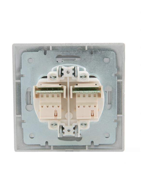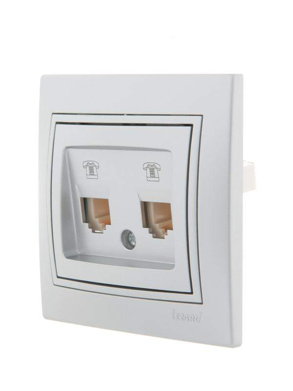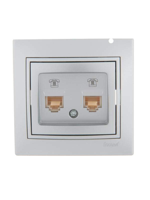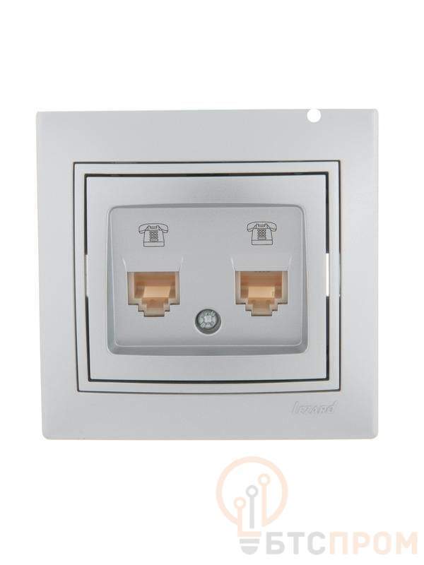 Розетка телефонная 2-м СП Mira RJ11 сер. метал. LEZARD 701-1010-138 фото в каталоге от BTSprom.by