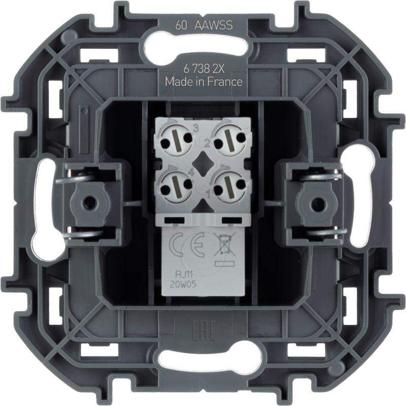 Розетка телефонная для скрытого монтажа Inspiria, разьем RJ11, цвет "Антрацит". Применяется для быстрого подключения к сетям телекоммуникаций (например, к телефонным сетям общего пользования).