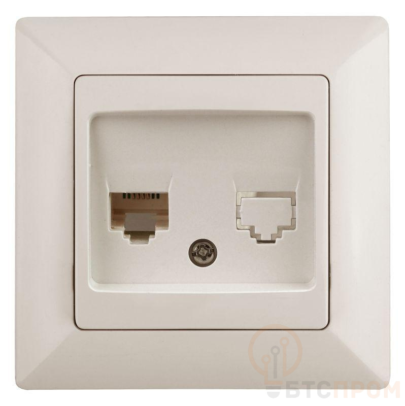 Розетка телефонная RJ11, серии Solo, скрытой установки 4-302-02 цвет слоновая кость. Выполнена из негорючего термопластика, укомплектована одноместной рамкой.