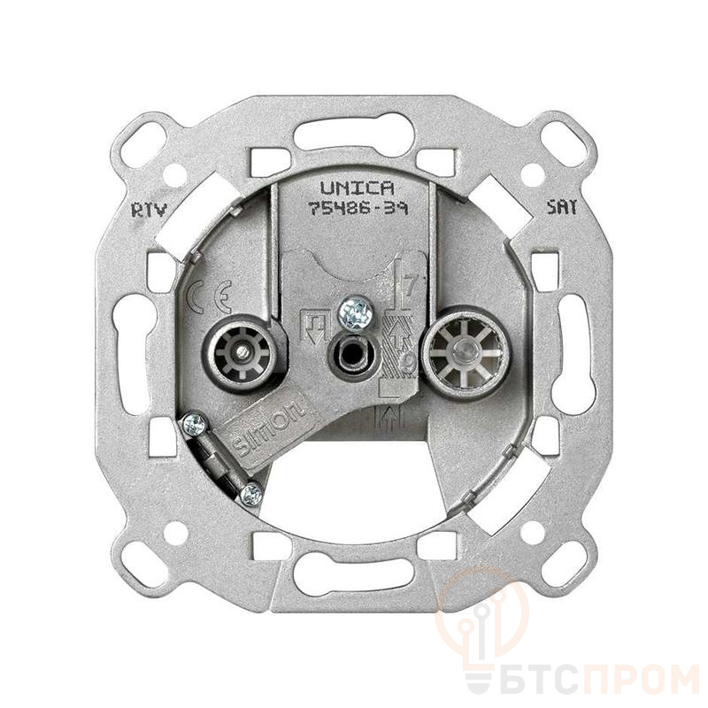 Телевизионная розетка Simon 75486-39 — это надежное и современное решение для организации телевизионного, радиовещательного и спутникового сигналов в жилых и коммерческих помещениях. Модель предназначена для монтажа в стандартную монтажную коробку и является конечным элементом в звездообразной (индивидуальной) схеме разводки.