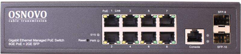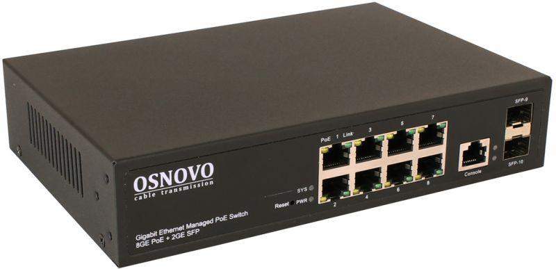 Коммутатор гигабитный L2 PoE на 10 портов 8 х10/100/1000 Base-T PoE 2хSFP 1000 Base-T PoE на порт до 30Вт суммарно до 150Вт SW-80802/L(150W) OSNOVO 1000641205