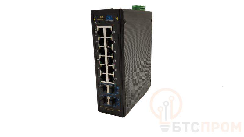 Коммутатор L3 индустриальный на DIN рейку 8х10/100/1000Мбит/с PoE af/at 410/100/1000Мбит/с RJ-45 4х10Gbps SFP+ питание 48В 480Вт поставляется отдельно GIGALINK GL-SW-G311-16PST-I