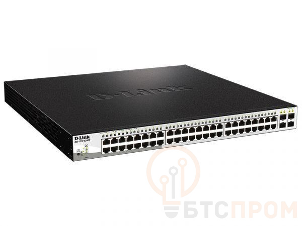 Коммутатор настраиваемый DGS-1210-52MPP/E2A WebSmart (48 порта 10/100/1000Base-T; PoE 802.3af/802.3at (30Вт) + 4 порта 1000Base-X SFP; PoE-740Вт D-link 1857390