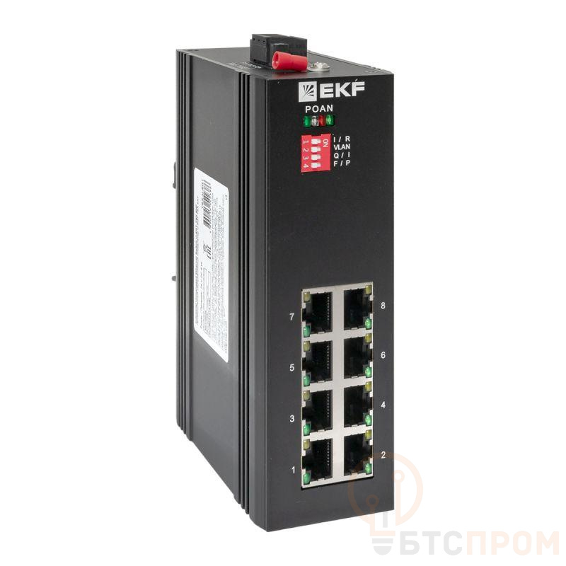 Коммутатор неуправляемый промышленный U-8GT 8 портов 10/100/1000Base-T(X) RJ45 монтаж на DIN-рейку TSX EKF TSX-U-8GT