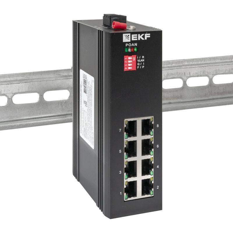 Коммутатор неуправляемый промышленный U-8GTP 8 портов 10/100/1000Base-T(X) RJ45 c PoE монтаж на DIN-рейку TSX EKF TSX-U-8GTP