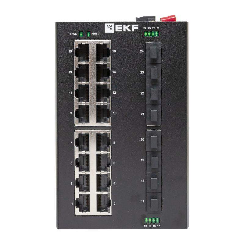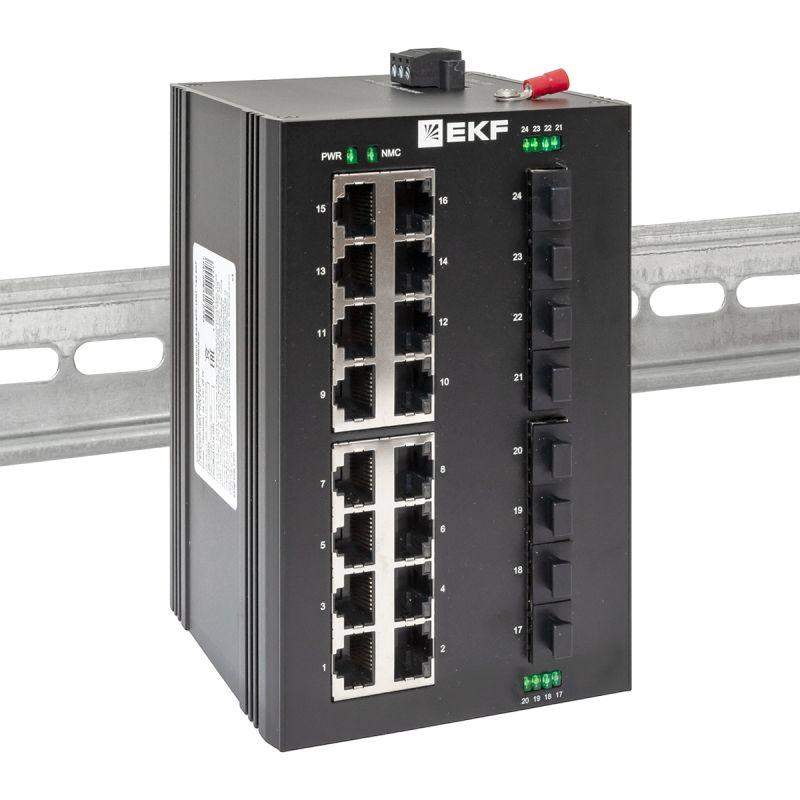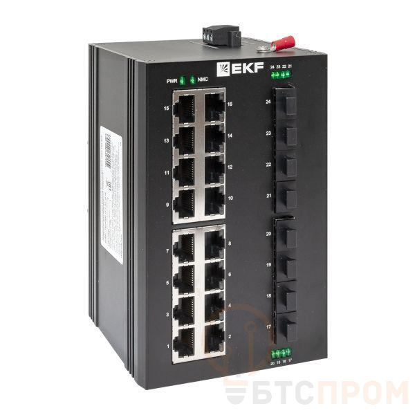Коммутатор неуправляемый промышленный U-8GX/SFP-16GT 8 портов 1000Base-X SFP 16 портов 10/100/1000Base-T(X) RJ45 монтаж на DIN-рейку TSX EKF TSX-U-8GX/SFP-16GT