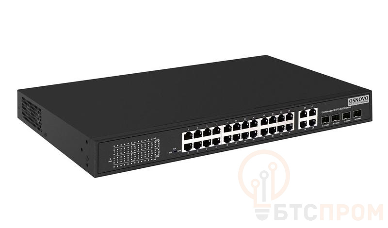 Коммутатор PoE SW-62444(400Вт) Fast Ethernet от бренда OSNOVO — это мощное и надежное сетевое решение для организации высокопроизводительной инфраструктуры. Устройство оснащено 24 портами Fast Ethernet (10/100 Мбит/с) с поддержкой технологии PoE (802.3af/at) и суммарным бюджетом мощности 400 Вт, что позволяет одновременно питать множество совместимых устройств, таких как IP-камеры, точки доступа Wi-Fi и VoIP-телефоны. Дополнительные 4 комбо-порта (SFP 1000 Мбит/с + RJ45 10/100/1000 Мбит/с) обеспечивают гибкое и высокоскоростное подключение к магистральной сети.