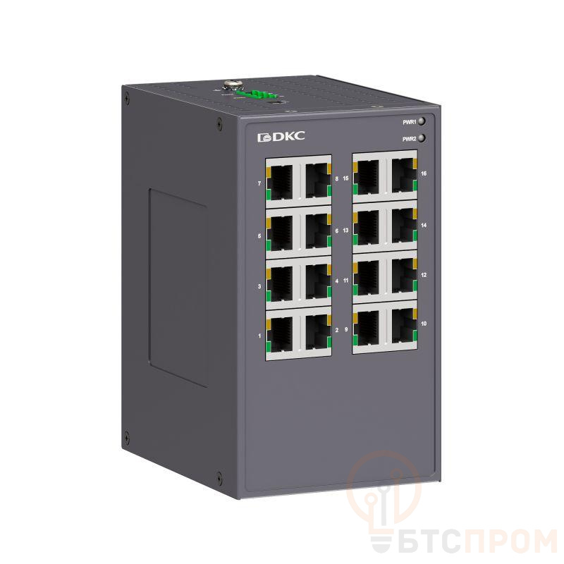 Коммутатор промышленный неуправляемый 16х10/100Base-T(X) портов RJ45 12-48В DC/18-30В AC с резервированием DKC N1000-16T-P2
