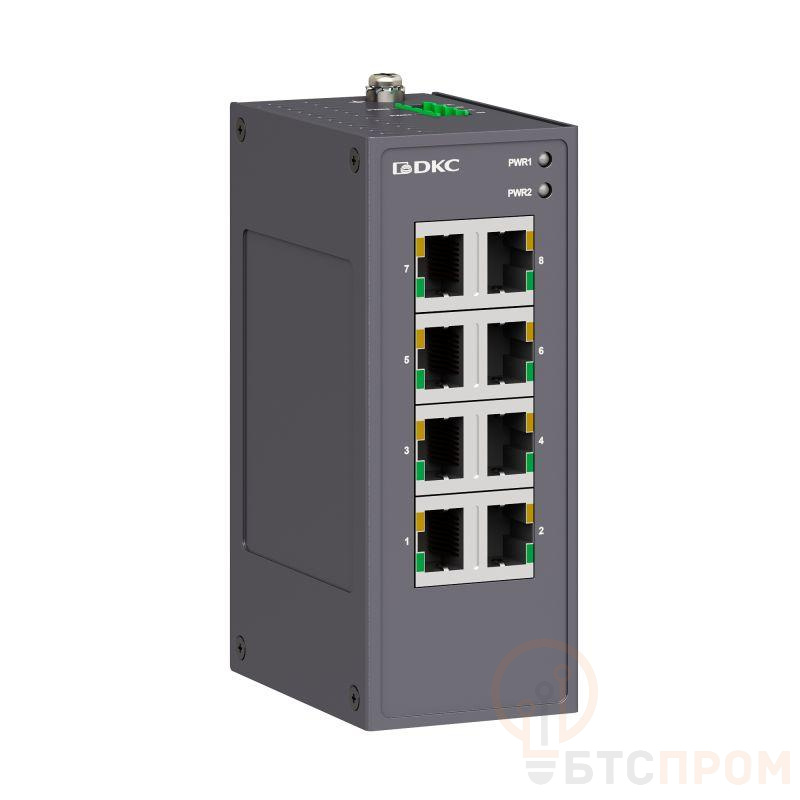 Коммутатор промышленный неуправляемый 8х10/100Base-T(X) портов RJ45 12-48В DC/18-30В AC с резервированием DKC N1000-8T-P2