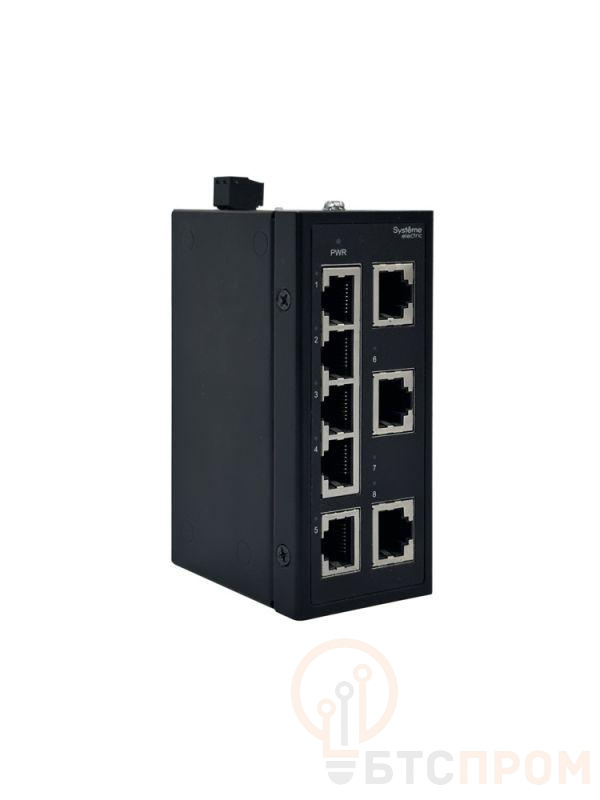 Неуправляемый промышленный коммутатор Ethernet из антикоррозионного алюминиевого сплава; общее количество портов: 8 (8х10/100BaseT); класс защиты IP30; рабочая температура: -40…+75 °C; напряжение питания: нерезервируемое 12/24/48 VDC ИЛИ нерезервируемое 24 VAC.