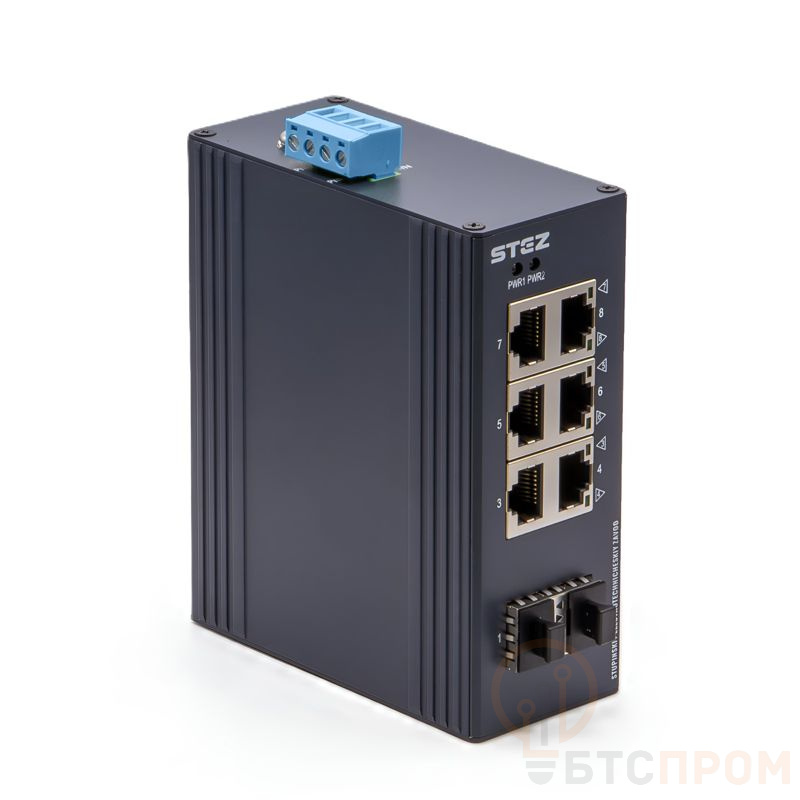 Промышленный коммутатор STEZ1006-2SFP-T от производителя СТЭЗ — это надежное сетевое решение для создания устойчивых коммуникационных инфраструктур в условиях жесткой эксплуатации. Устройство оснащено 4 медными портами 10/100BASE-TX и 2 восходящими портами 100BASE-FX с интерфейсами SFP, что обеспечивает гибкость при построении сетей и позволяет организовывать оптические линии связи для увеличения расстояния передачи данных.