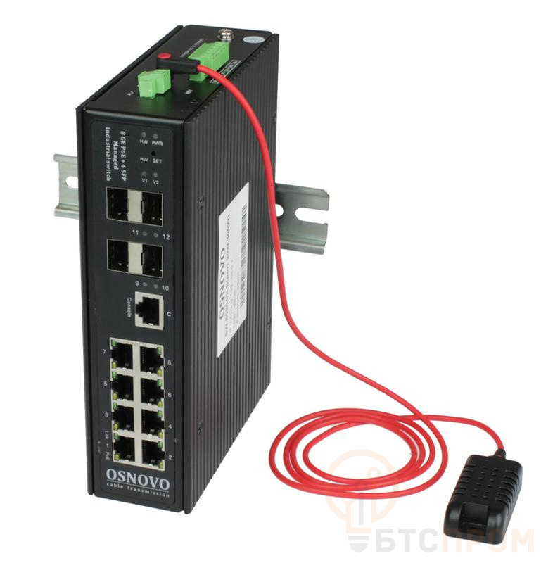 Коммутатор промышленный управляемый (L2+) Hi PoE SW-80804/ILS(port 90Вт 300Вт) Gigabit Ethernet на 8GE PoE + 4GE SFP порта. С функцией мониторинга температуры/влажности/напряжения. OSNOVO 13745