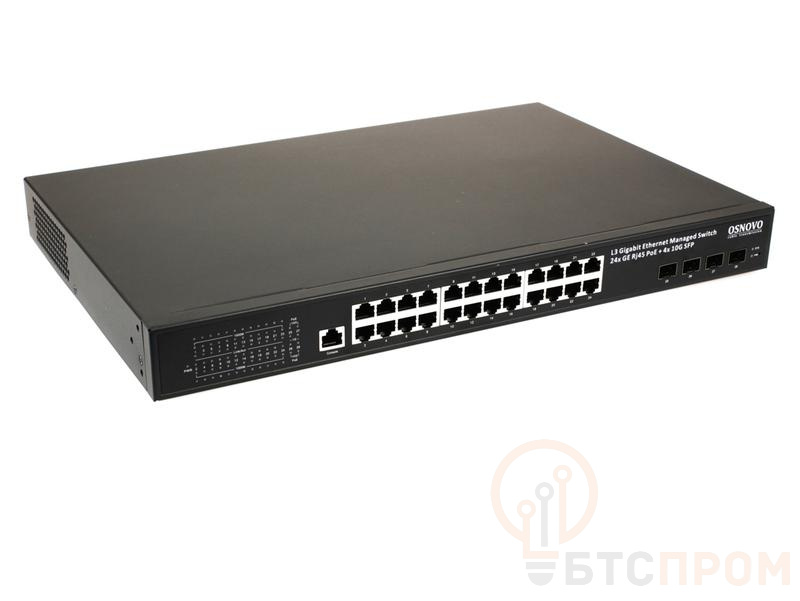 Коммутатор промышленный управляемый L3 PoE SW-24G4X-1L-I на 24хGE RJ-45 c PoE + 4х10G SFP+ порта OSNOVO 14412