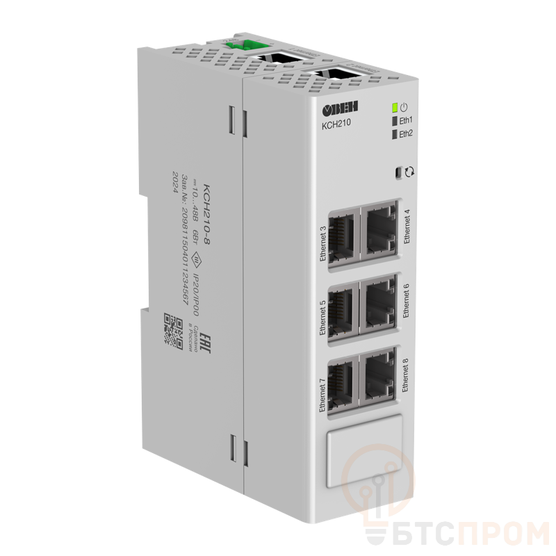Коммутатор сетевой неуправляемый КСН210-8 от ОВЕН — это надежное 8-портовое устройство для организации локальной сети. Оборудование предназначено для высокоскоростной передачи данных на скорости до 100 Мбит/с по витой паре и поддерживает функцию автоматического определения полярности и перекрещивания линий (Auto MDI/MDIX).