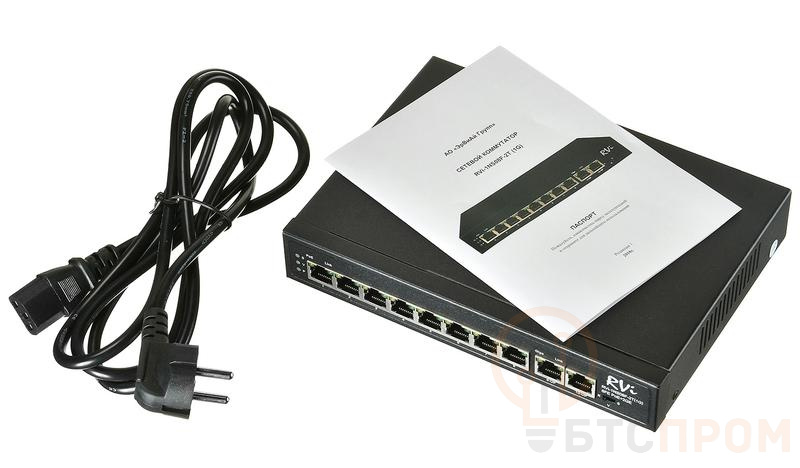 Коммутатор RVI RVi-1NS08F-2T (1G) — это надежное 10-портовое решение для построения высокоскоростных проводных сетей. Устройство оснащено 8 портами 10/100/1000 Мбит/с с технологией PoE+ и 2 восходящими гигабитными SFP-слотами для оптоволоконного подключения.