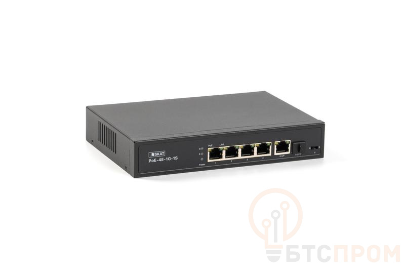 –Коммутатор SKAT PoE-4E-1G-1S PoE Plus 60Вт порты: 4-Ethernet 1-Uplink 1-SFP Бастион 4084