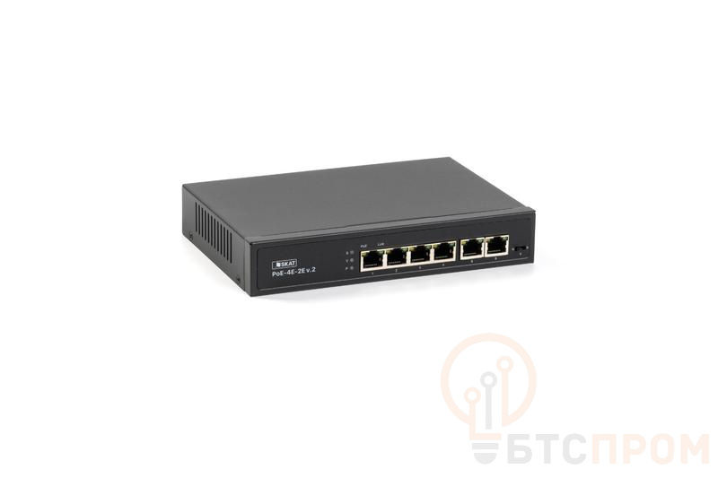 Коммутатор SKAT PoE-4E-2E v.2 PoE Plus 65Вт от Бастион — это компактное и мощное сетевое решение для организации стабильного подключения оборудования по технологии Power over Ethernet. Устройство оснащено 6 портами: 4 порта 10/100 Мбит/с с поддержкой стандарта PoE+ и 2 независимых гигабитных Uplink-порта 10/100/1000 Мбит/с для высокоскоростного подключения к магистральной сети.