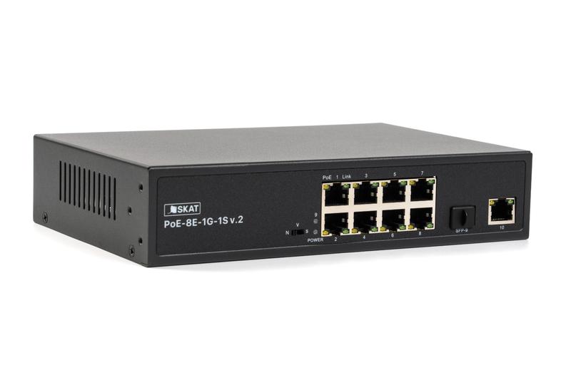 –Коммутатор SKAT PoE-8E-1G-1S v.2 PoE Plus 120Вт порты: 8-Ethernet 1-Uplink 1-SFP Бастион 4074