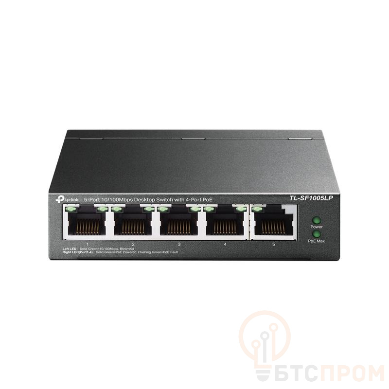 Коммутатор TL-SF1005LP 5-портовый 10/100Мбит/с неуправляемый с 4 портами PoE 41Вт метал. корпус настол. TP-Link 1792447