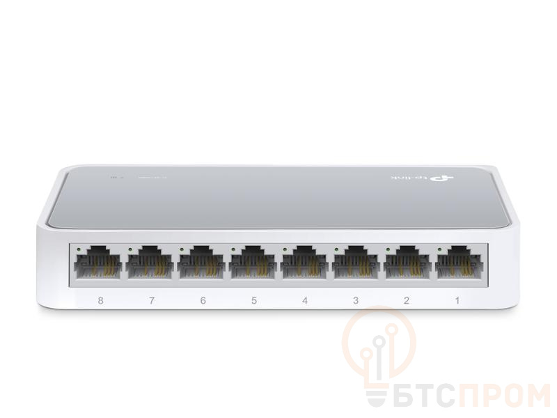TL-SF1008D — это надежный 8-портовый неуправляемый коммутатор от TP-Link, предназначенный для базового расширения проводной сети. Каждый порт поддерживает скорость передачи данных 10/100 Мбит/с с автоматическим определением и согласованием MDI/MDIX, что исключает необходимость использования перекрестных кабелей и упрощает установку.