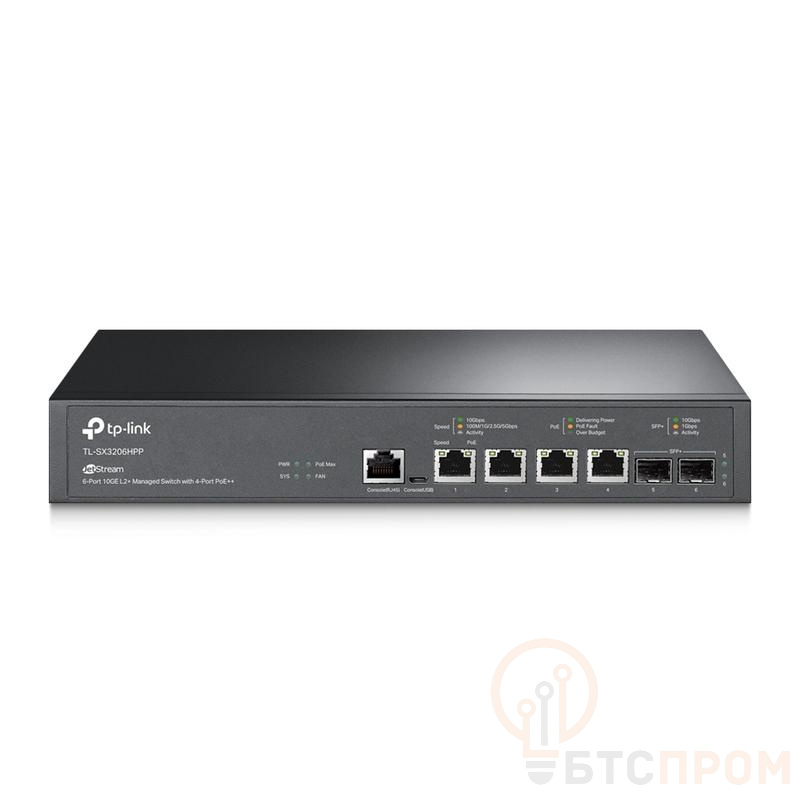 Коммутатор TL-SX3206HPP JetStream управляемый 10Гбит/с уровня 2+ с четырьмя портами PoE++ и двумя слотами SFP+ TP-Link 1897382
