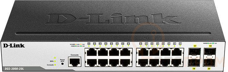 Коммутатор управляемый DGS-3000-20L/B1A 16G 4SFP D-Link 1605764 фото в каталоге от BTSprom.by